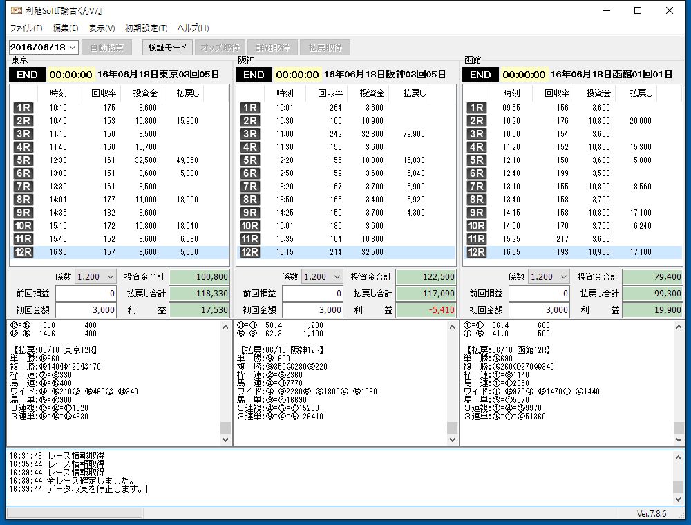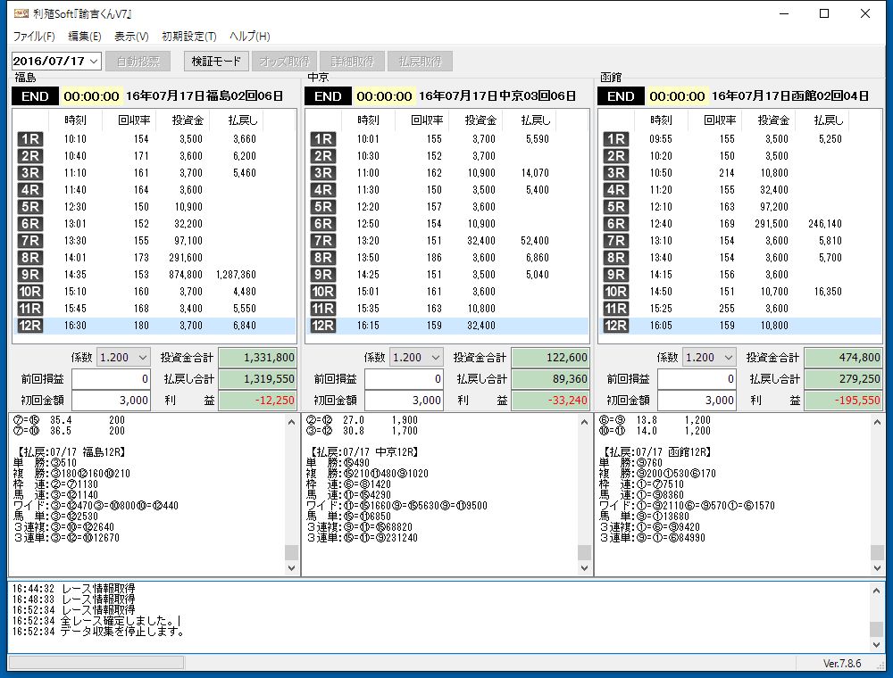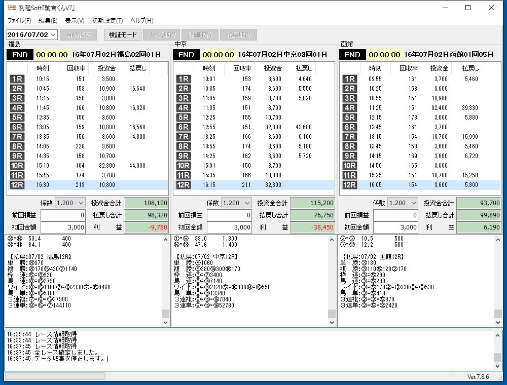 JRA IPADの仕様変更により、ソフトのバージョンアップ対応の為運用できませんでした。